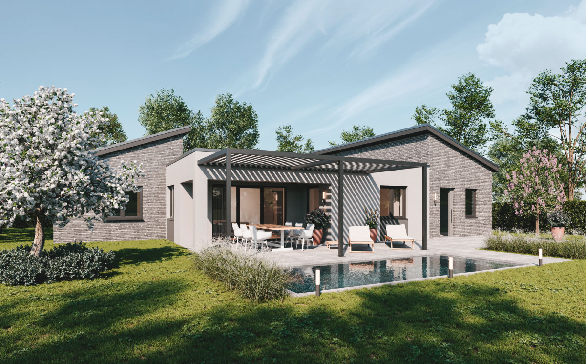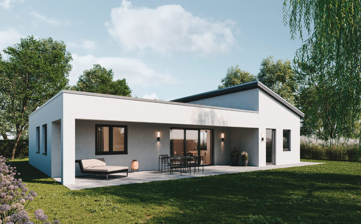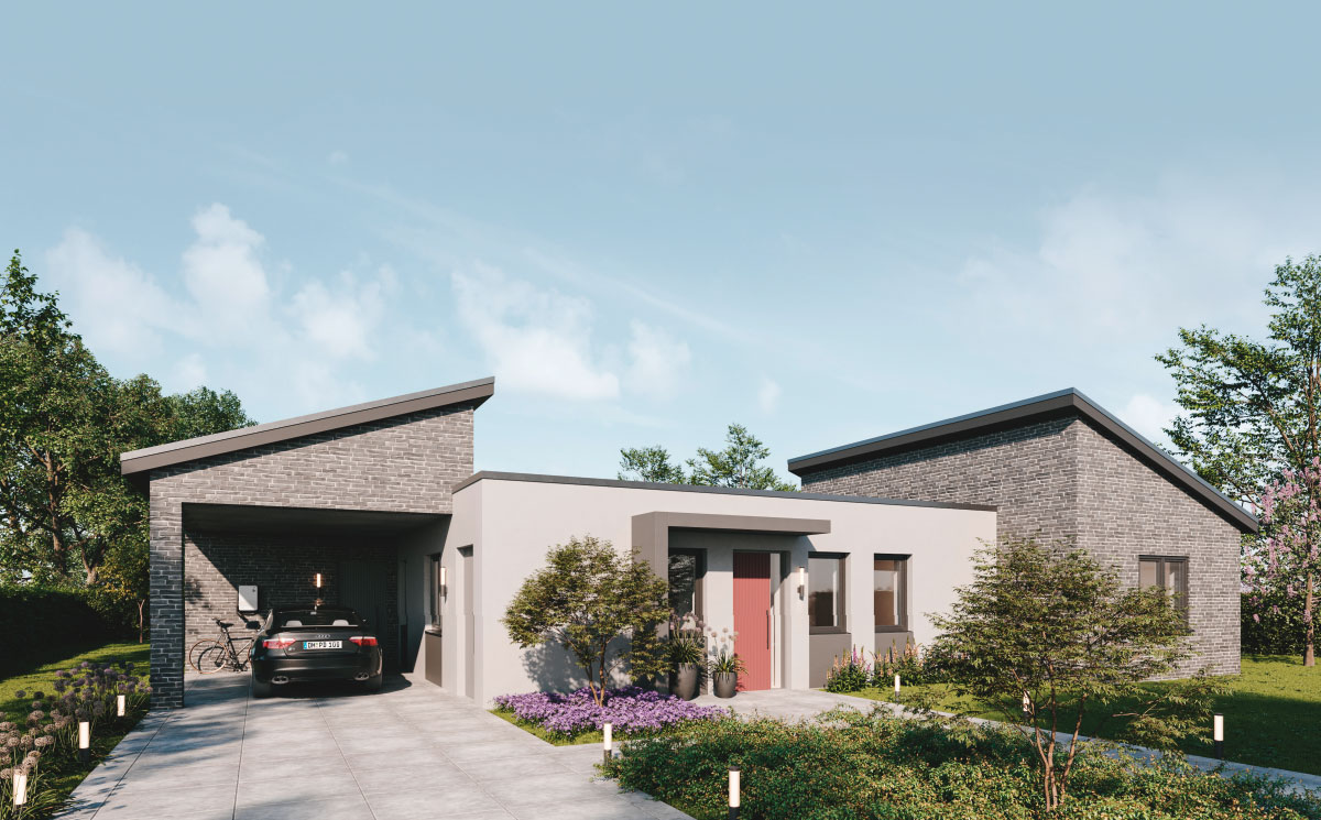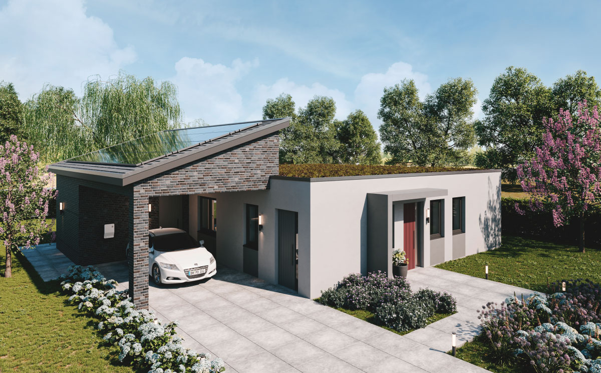 22° Pultdach, mit Energie­gewinnung