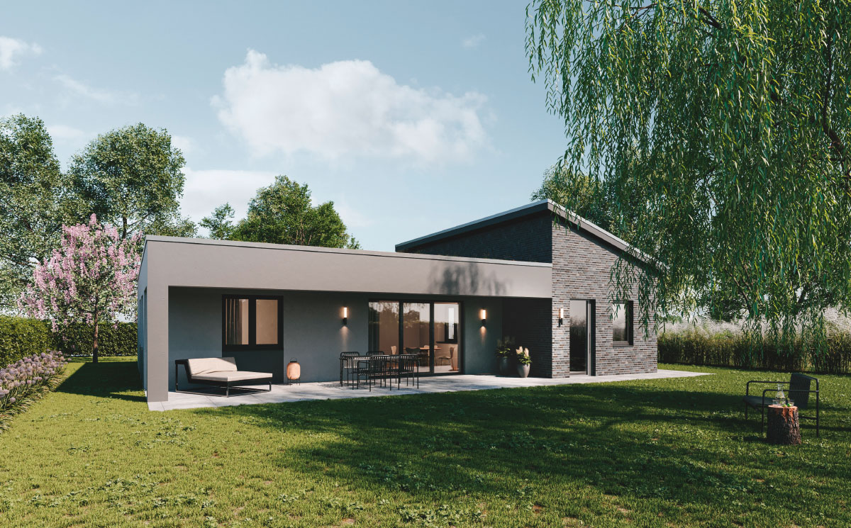 22° Pultdach, mit Energie­gewinnung